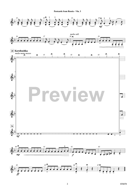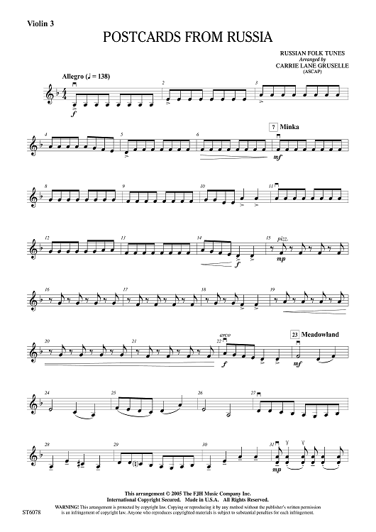 "Postcards from Russia - Violin 3" Sheet Music by Russian Folk Tunes