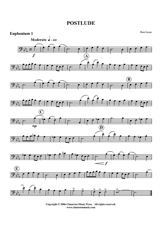 "Postlude - Euphonium 1 BC/TC" Sheet Music by Ron Geese