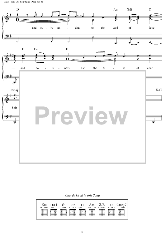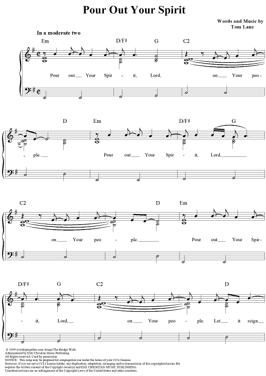 Digital Sheet Music for Pour Out Your Spirit by Tom Lane scored for Piano/Vocal/Chords; id:113706