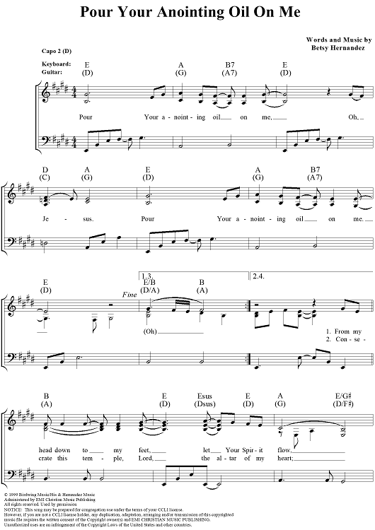"Pour Your Anointing Oil On Me" Sheet Music by Betsy Hernandez