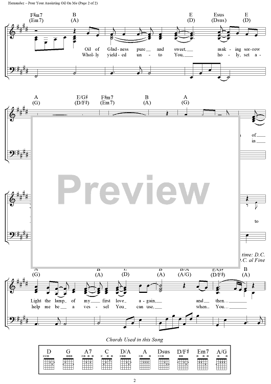 Digital Sheet Music for Pour Your Anointing Oil On Me by Betsy Hernandez scored for Piano/Vocal/Chords; id:113694