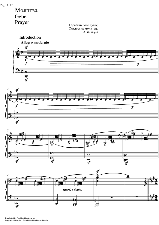Digital Sheet Music for Prayer by Mikhail Glinka scored for Piano Solo; id:330352