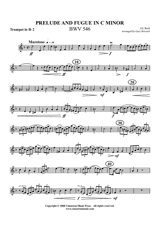 Digital Sheet Music for Prelude and Fugue in C Minor, BWV 546 - Trumpet 2 in Bb by Johann Sebastian Bach, Gary Bricault scored for Brass Quintet; id:416317