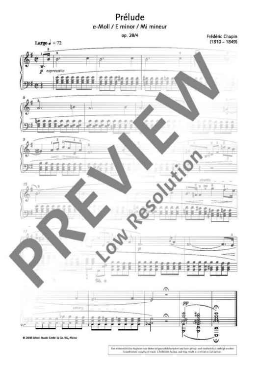 Digital Sheet Music for Prélude E minor by Frederic Chopin scored for Piano; id:478343