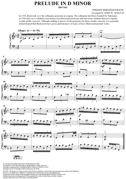 "Prelude in D Minor (BWV935)" Sheet Music by Johann Sebastian Bach