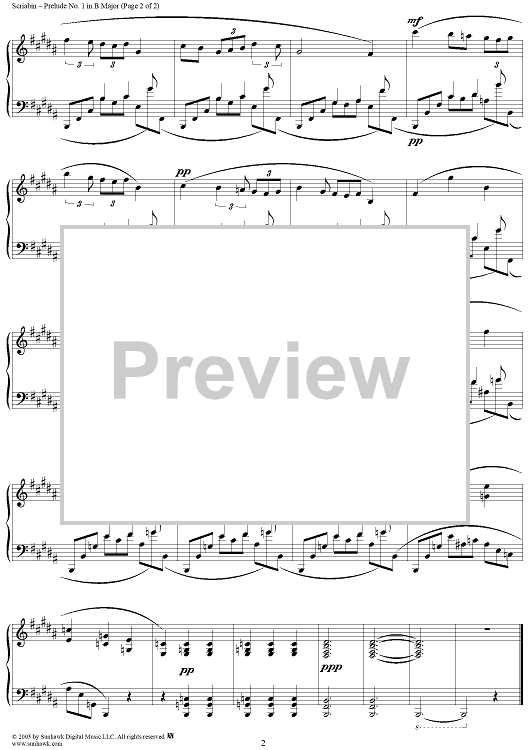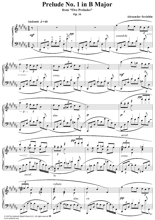 "Prelude No. 1 in B major" Sheet Music by Alexander Scriabin