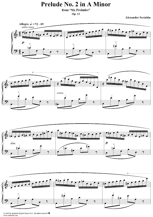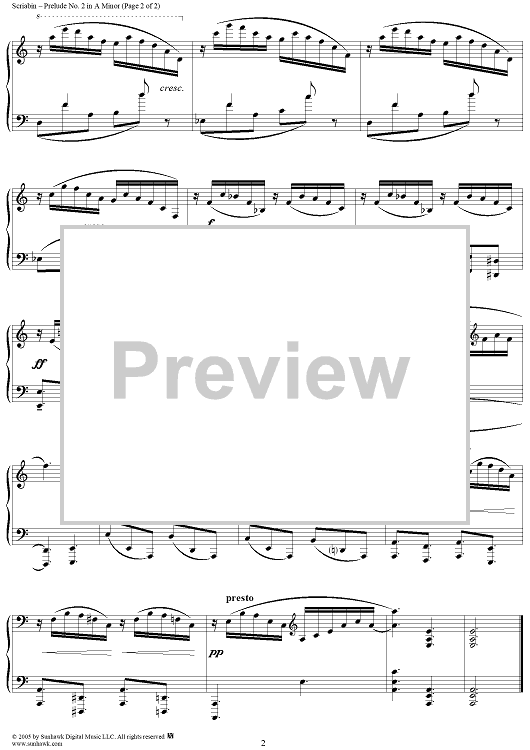 "Prelude No. 2 in A minor" Sheet Music by Alexander Scriabin