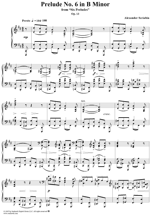 "Prelude No. 6 in B minor" Sheet Music by Alexander Scriabin