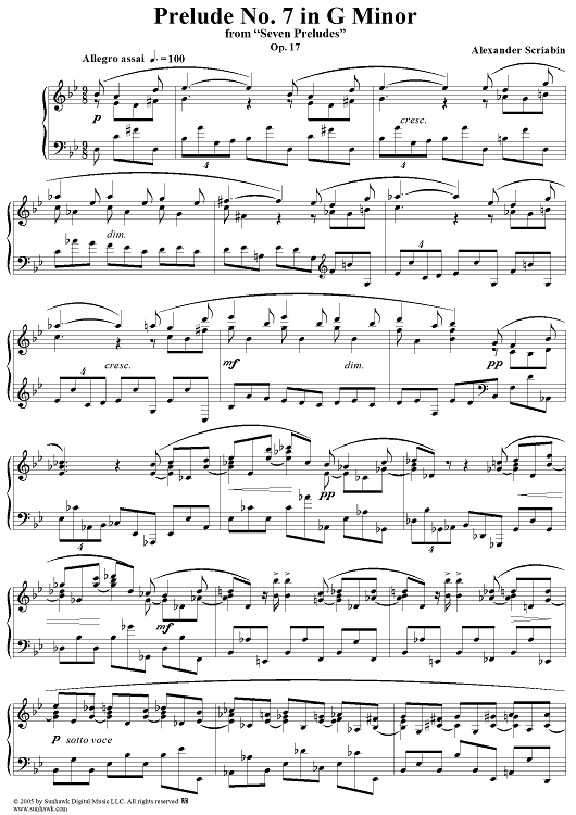 "Prelude No. 7 in G minor" Sheet Music by Alexander Scriabin