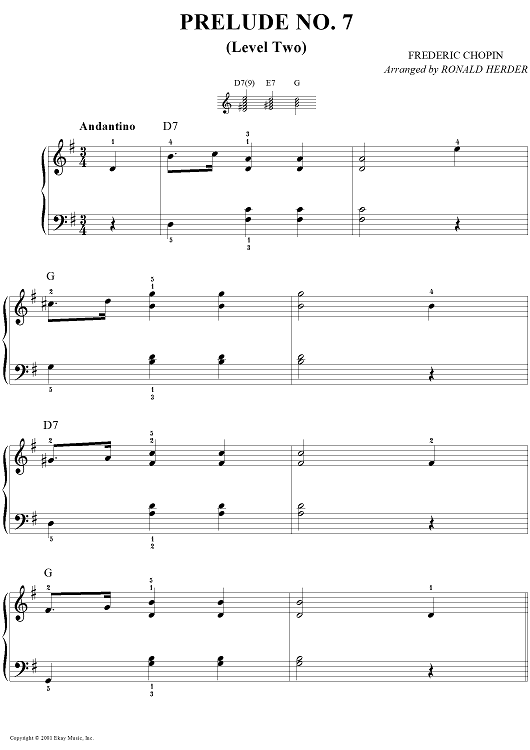Digital Sheet Music for Prelude No. 7 (Level Two) by Frederic Chopin, Ronald Herder scored for Easy Piano; id:284811