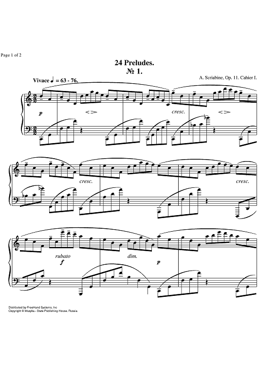 Digital Sheet Music for Prelude Op.11 No. 1 by Alexander Scriabin scored for Piano Solo; id:330246