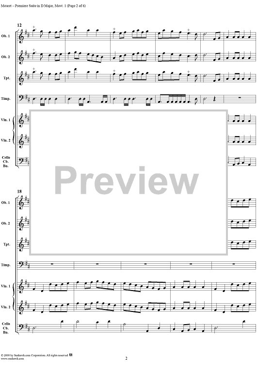 Digital Sheet Music for Premiere Suite in D Major, Movt. 1 by Jean-Joseph Mouret scored for Orchestra; id:252469