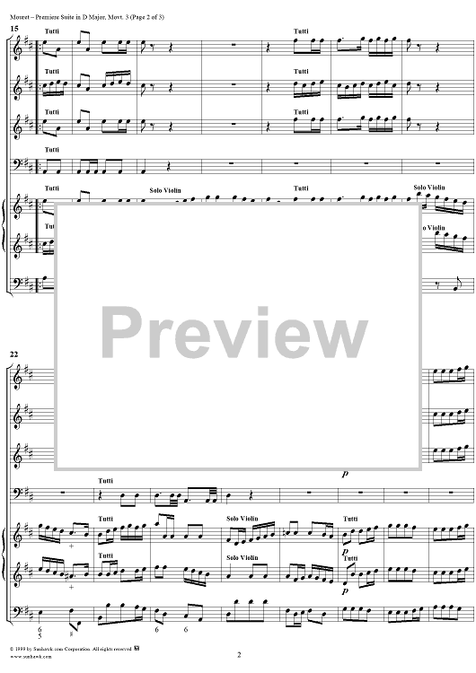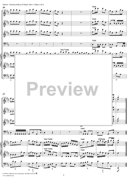Digital Sheet Music for Premiere Suite in D Major, Movt. 3 by Jean-Joseph Mouret scored for Orchestra; id:252476