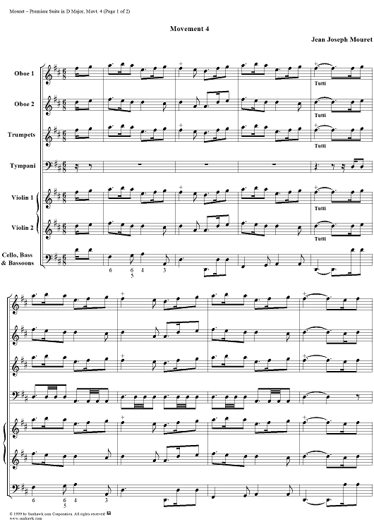 "Premiere Suite in D Major, Movt. 4" Sheet Music by Jean-Joseph Mouret