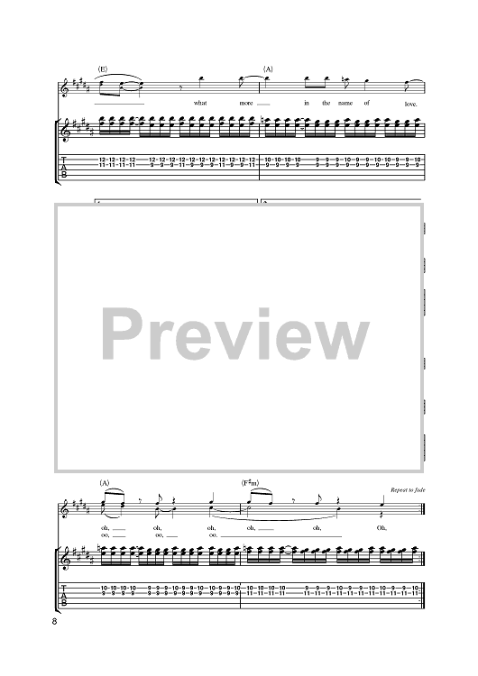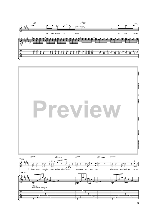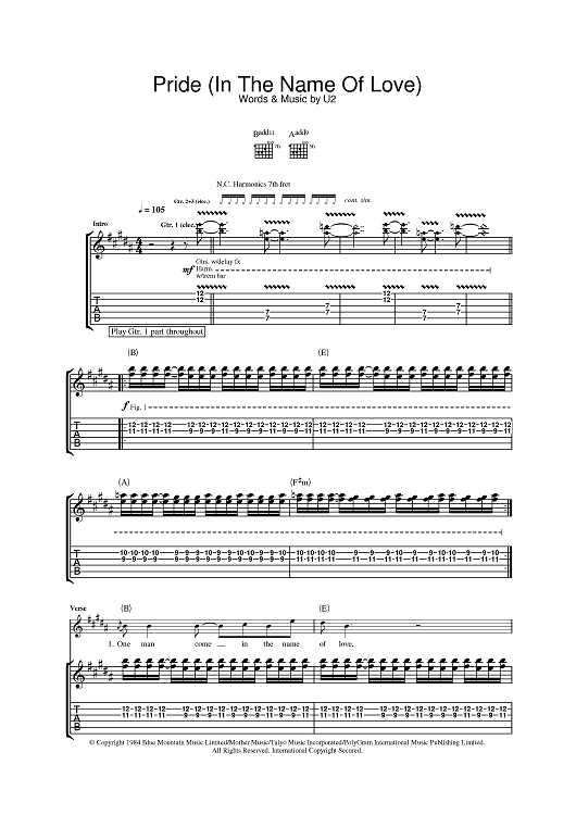 Digital Sheet Music for Pride (In The Name Of Love) by U2 scored for Guitar Tab; id:381932