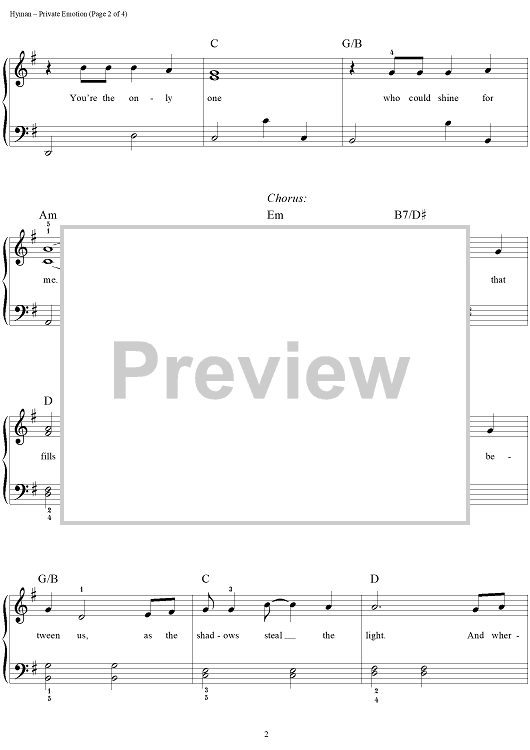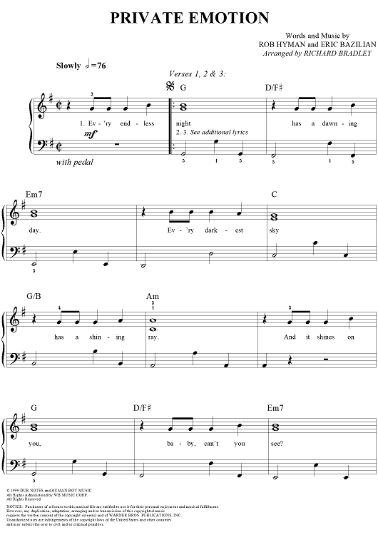 Digital Sheet Music for Private Emotion by Richard Bradley, Ricky Martin, Rob Hyman, Meja, Eric Bazilian scored for Easy Piano; id:289238