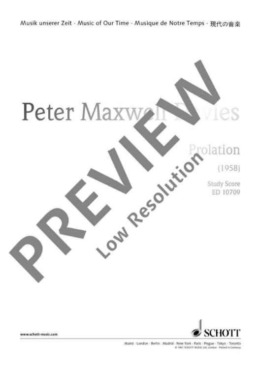 Digital Sheet Music for Prolation - Full Score by Sir Peter Maxwell Davies scored for Orchestra; id:489042