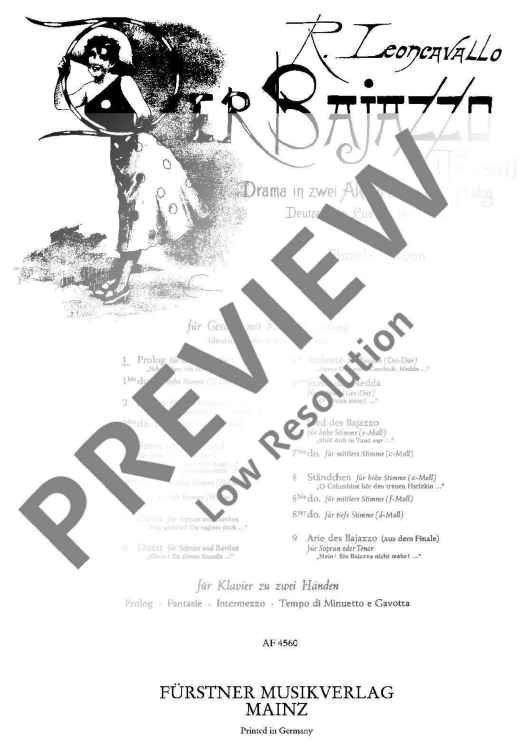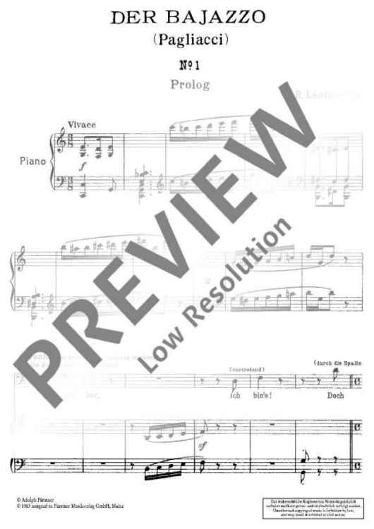 "Prolog in C major" Sheet Music by Ruggiero Leoncavallo
