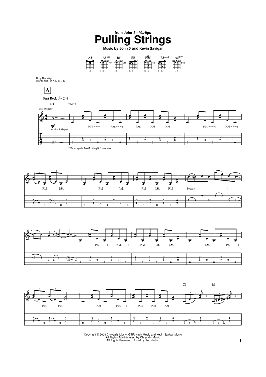 Digital Sheet Music for Pulling Strings by Kevin Savigar, John 5 scored for Guitar Tab; id:381032