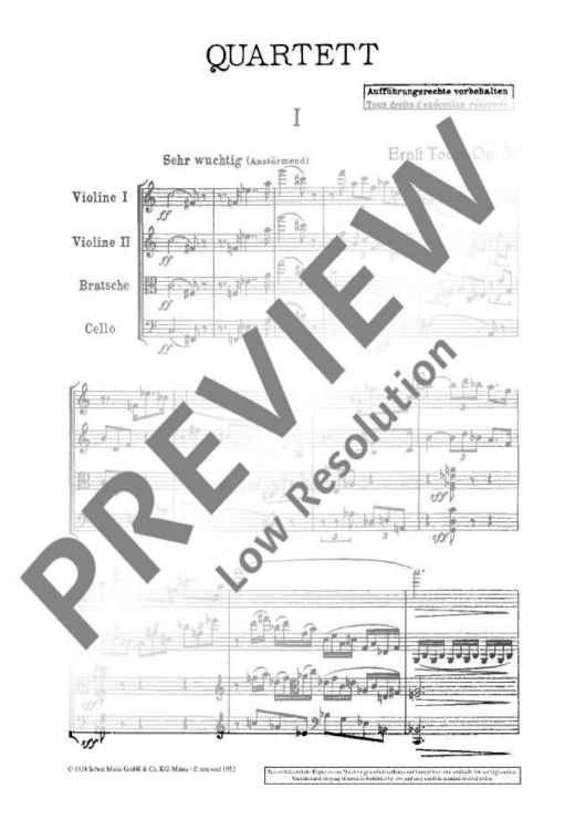 Digital Sheet Music for Quartet - Score by Ernst Toch scored for 2 Violins, Viola And Cello; id:472853