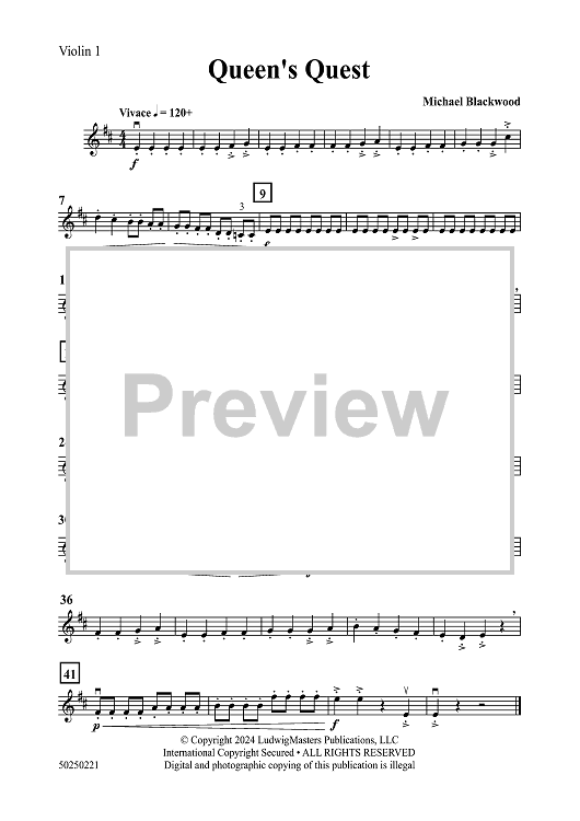 "Queen's Quest - Violin 1" Sheet Music by Michael Blackwood