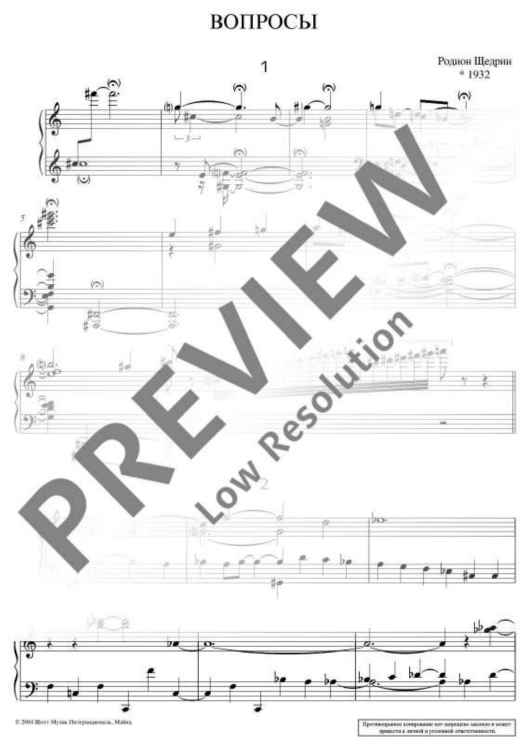 Digital Sheet Music for Questions by Rodion Shchedrin scored for Piano; id:490872