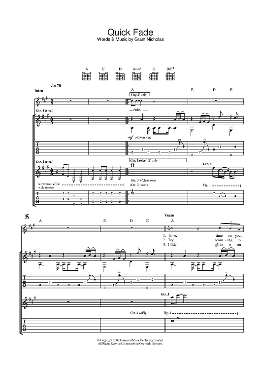 Digital Sheet Music for Quick Fade by Feeder scored for Guitar Tab; id:377933