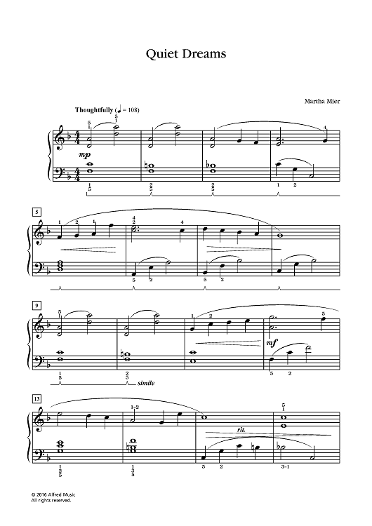 Digital Sheet Music for Quiet Dreams by Martha Mier scored for Piano; id:462785