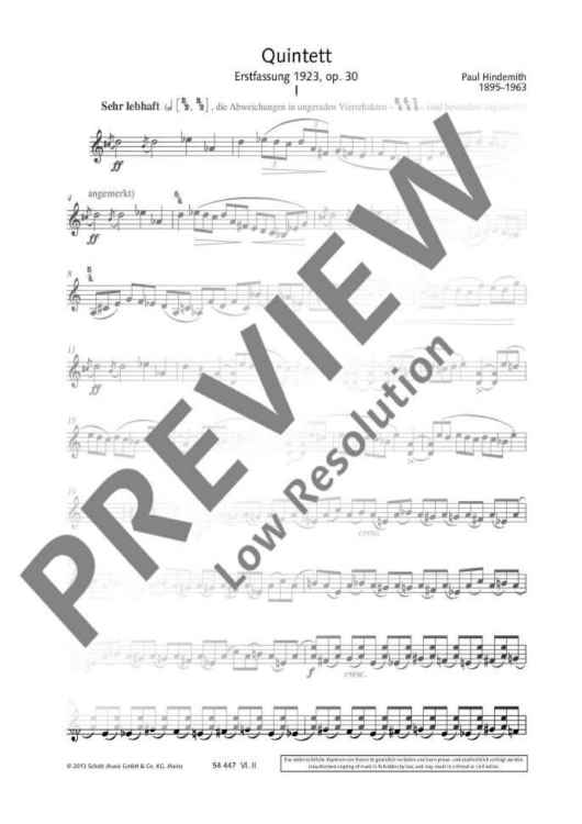 The quintet was printed and published in a revised version as opus 30 in 1954. Now, the first version of 1923, edited on the basis of the text of the Paul Hindemith Complete Edition, is published for the first time.