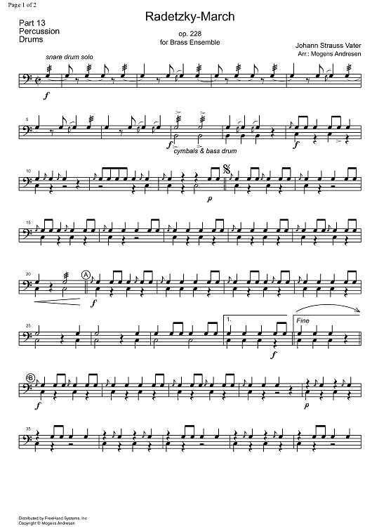Digital Sheet Music for Radetzky Marsch Op.228 - Percussion by Johann Strauss I, Mogens Andresen scored for Brass Ensemble; id:323287
