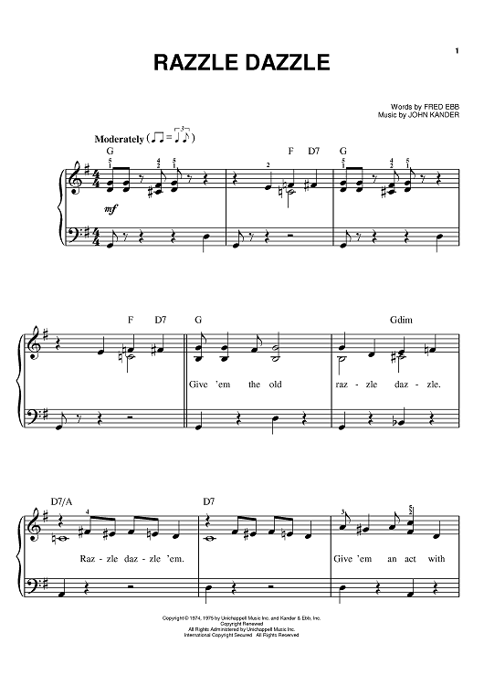 Digital Sheet Music for Razzle Dazzle by John Kander, Fred Ebb scored for Easy Piano; id:371594