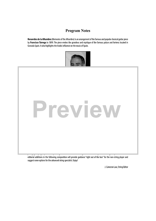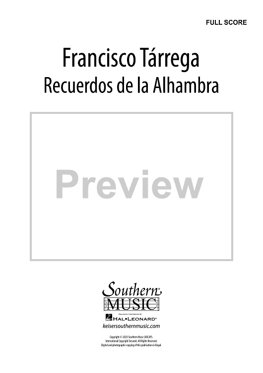 "Recuerdos de la Alhambra - Full Score" Sheet Music by Francisco Tárrega