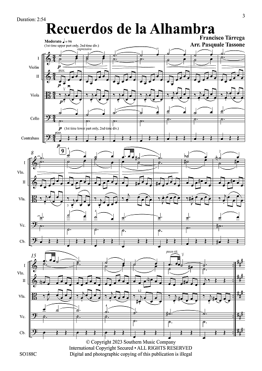 Digital Sheet Music for Recuerdos de la Alhambra - Full Score by Francisco Tárrega, Pasquale Tassone scored for Orchestra; id:507616