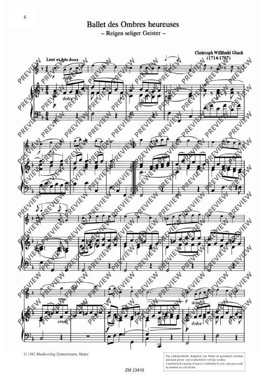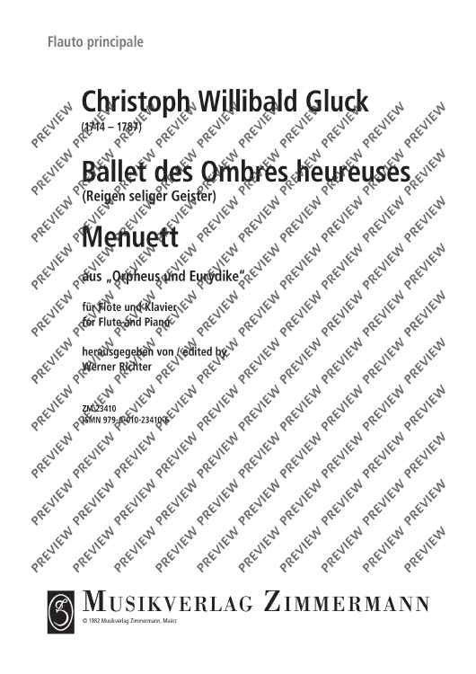 Digital Sheet Music for Reigen seliger Geister (Dance of the Blessed Spirits) and Menuet by Christoph Willibald Glück, Werner Richter scored for Flute And Piano; id:496722