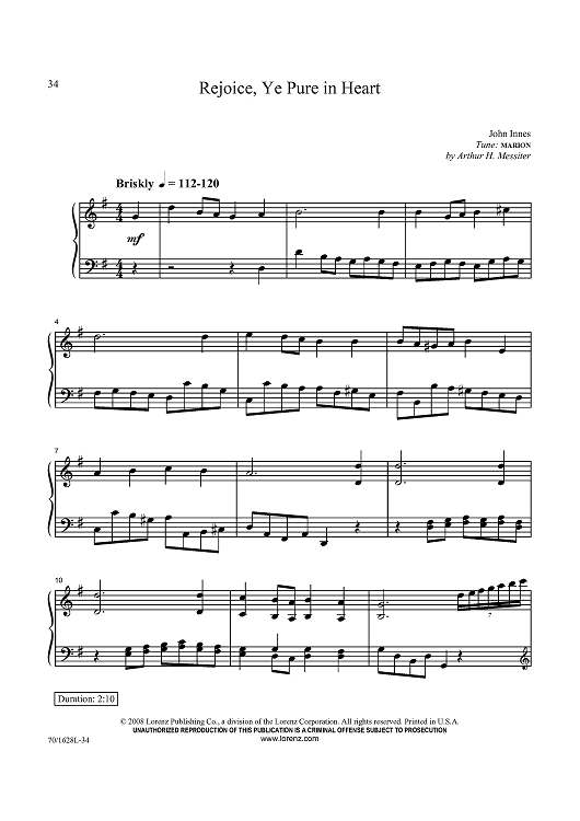 Digital Sheet Music for Rejoice, Ye Pure in Heart by Arthur Henry Messiter, John Innes scored for Piano Solo; id:434207