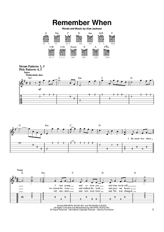 Digital Sheet Music for Remember When by Al Jackson Jr scored for Easy Guitar Tab; id:383522