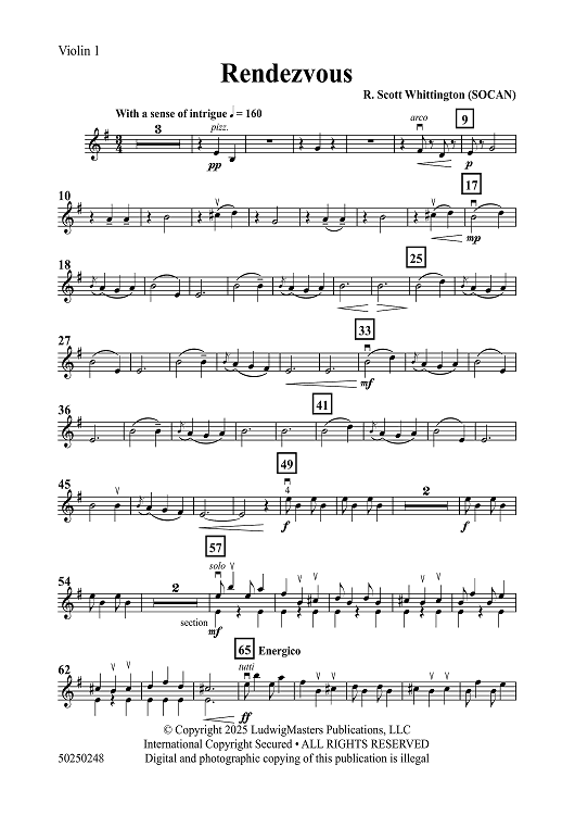 "Rendezvous - Violin 1" Sheet Music by R. Scott Whittington