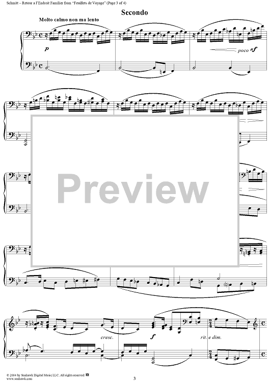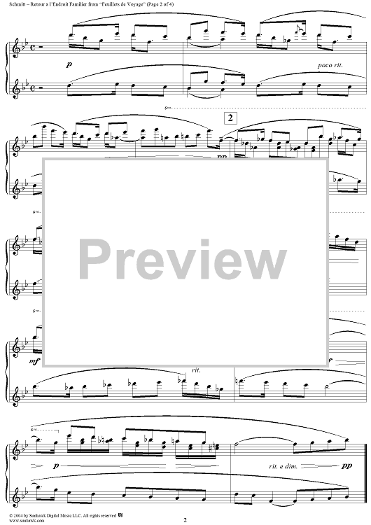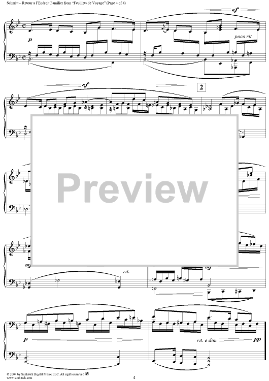 Digital Sheet Music for Retour a l'Endroit Familier, No. 9 from "Feuillets de Voyage", Op. 26, Book 2 by Florent Schmitt scored for 1 Piano, 4 Hands; id:296013