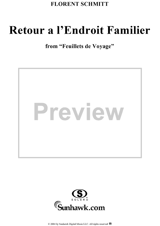 "Retour a l'Endroit Familier, No. 9 from "Feuillets de Voyage", Op. 26, Book 2" Sheet Music by Florent Schmitt