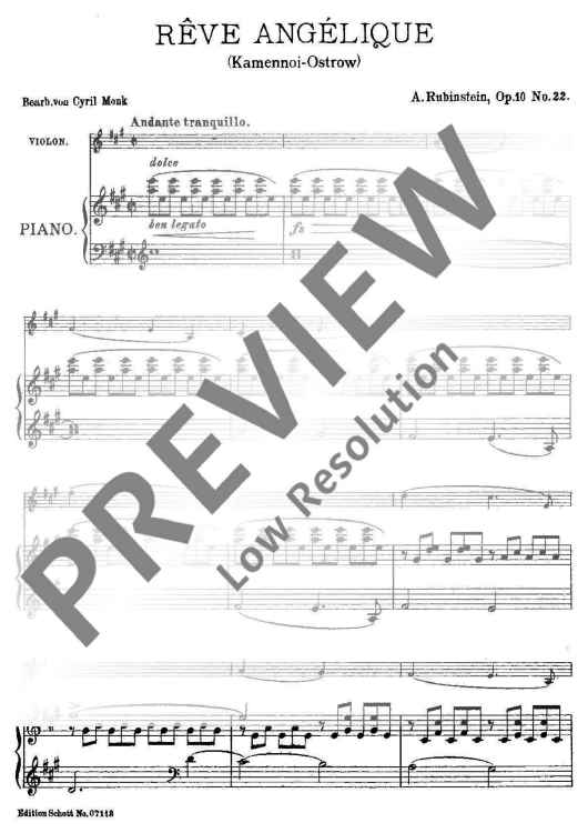 Digital Sheet Music for Rêve angélique by Grigorjewitsch Rubinstejn, Cyril Monk scored for Violin And Piano; id:478084