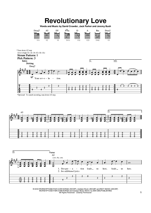 Digital Sheet Music for Revolutionary Love by Jack Parker, David Crowder, David Crowder Band, Jeremy Bush scored for Easy Guitar Tab; id:389457