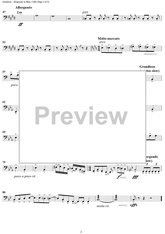 "Rhapsody in Blue - Cello" Sheet Music by George Gershwin