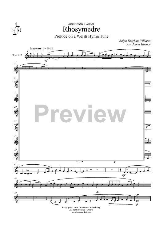 "Rhosymedre - Horn in F" Sheet Music by Ralph Vaughan Williams
