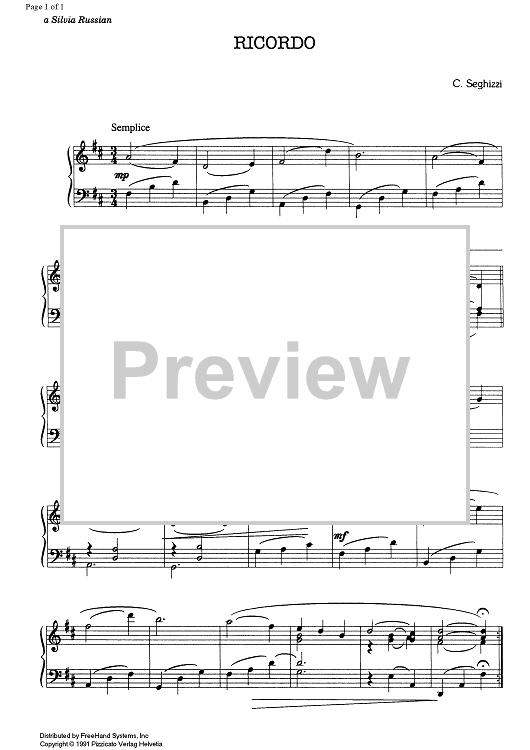 "Ricordo" Sheet Music by Cecilia Seghizzi Campolieti