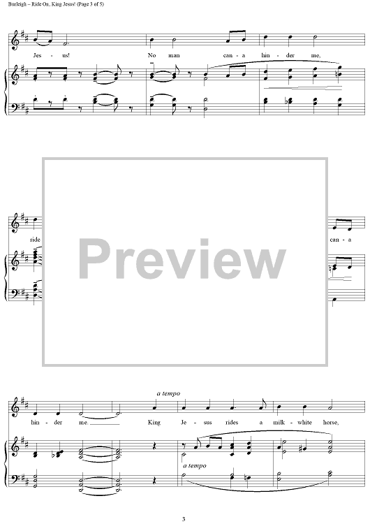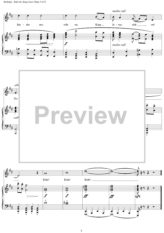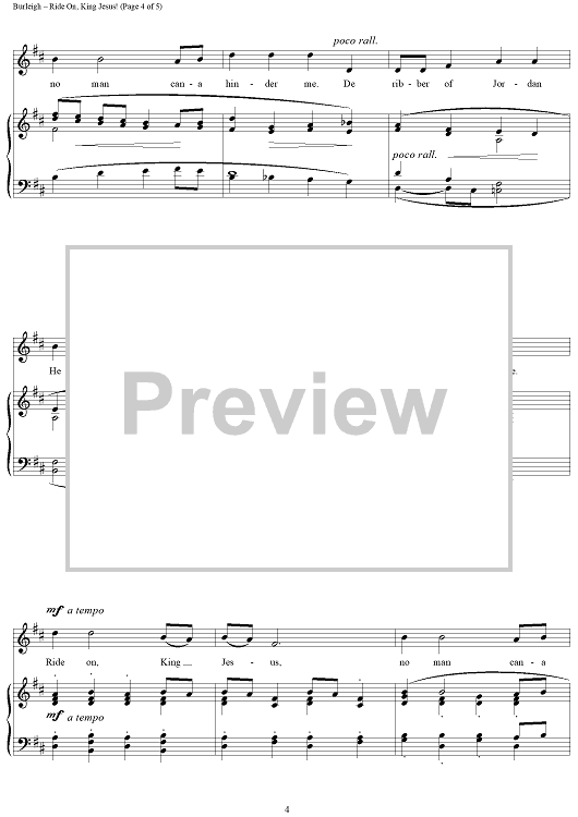 Digital Sheet Music for Ride On, King Jesus! by H. T. Burleigh, African American Spiritual scored for Piano/Vocal; id:433697