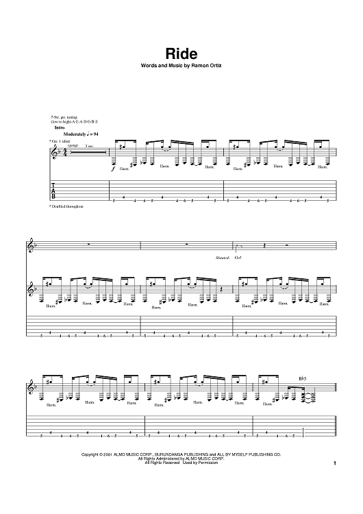 Digital Sheet Music for Ride by Ramon Ortiz, Puya scored for Guitar Tab; id:369298
