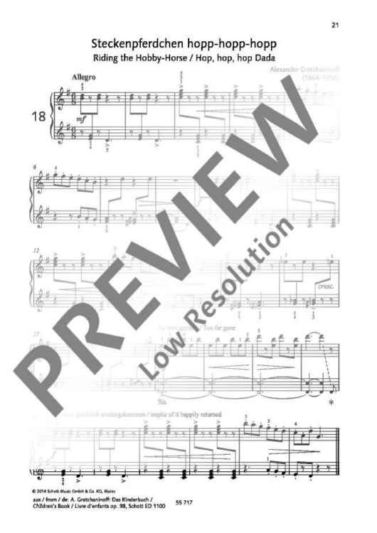 aus: A. Gretchaninoff: Das Kinderbuch, op. 98 ED 1100