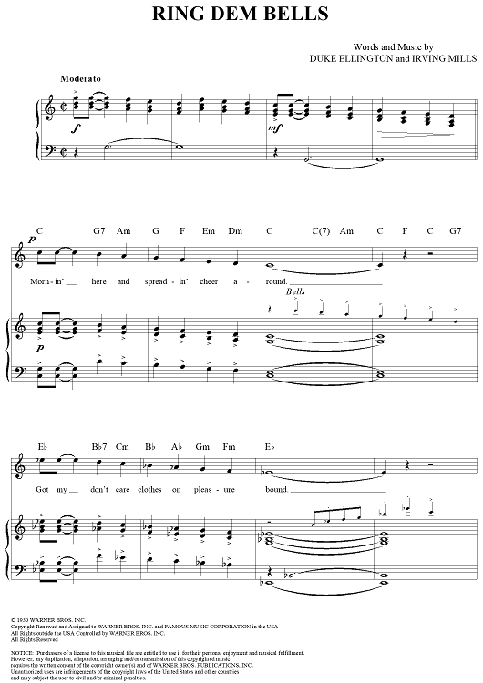 Digital Sheet Music for Ring Dem Bells by Duke Ellington, Irving Mills scored for Piano/Vocal/Chords; id:270346