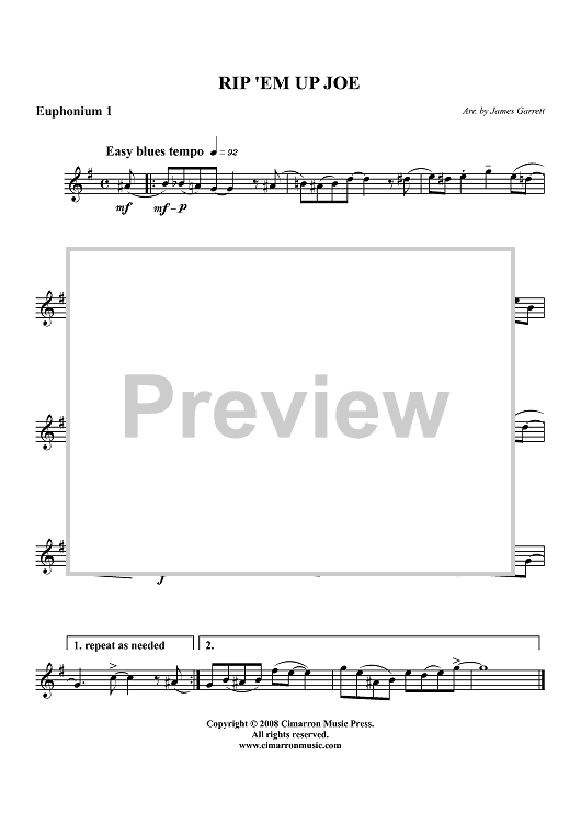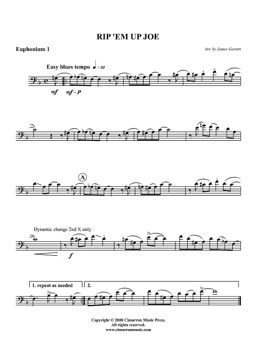 Digital Sheet Music for Rip 'em Up, Joe - Euphonium 1 BC/TC by James Garrett, Traditional scored for Tuba Quartet; id:416753