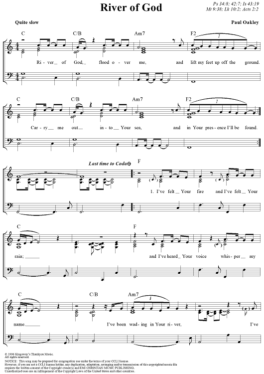 Digital Sheet Music for River of God by Paul Oakley scored for Piano/Vocal/Chords; id:110115